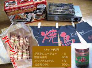 【送料無料】我が家は焼き鳥屋さんセット ![]() 商品詳細 商品名 ●やきとりのれん 1枚 (8文字以内で名入れします) ●焼き鳥専用!炉端亭ジュージュー 1台 (約W391×D227×H136) 約2.4kgカセットボンベ式 (カセットボンベは付いていません) ●国産生焼き鳥 30本 (急速凍結) ●焼鳥のタレ550g 1個 (更新日時:2011/01/27 13:50) Supported by 楽天ウェブサービス |